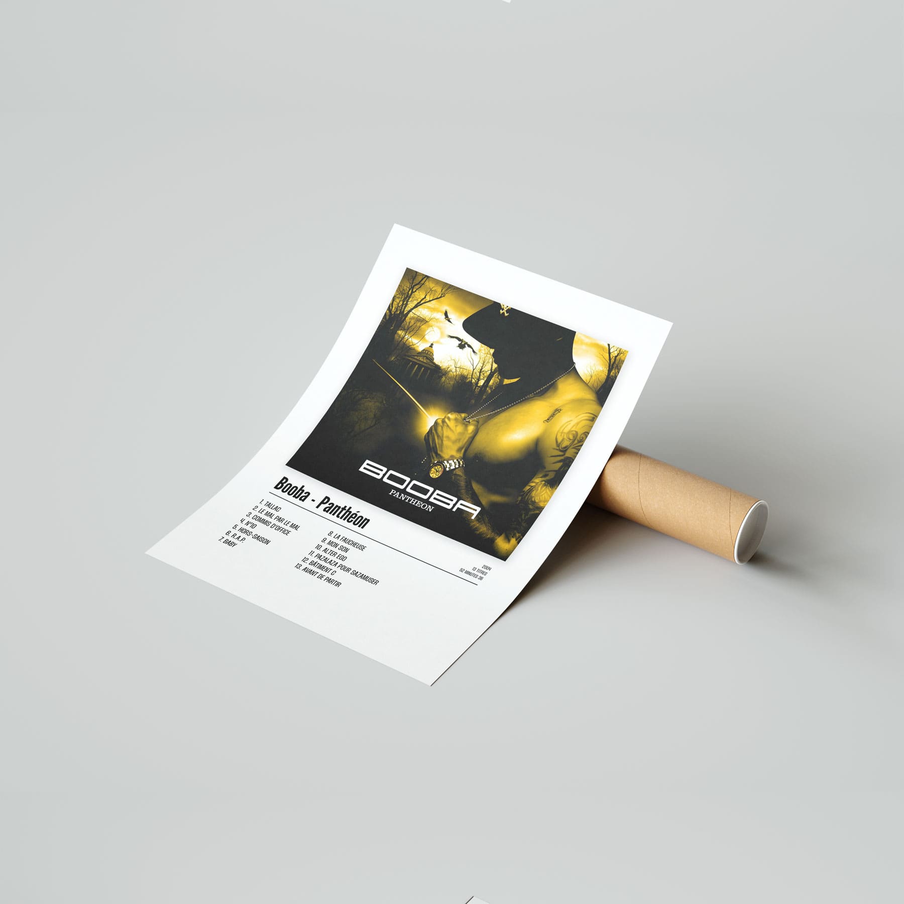 L'album "Panthéon" de Booba en poster pour décorer votre chambre, votre salon ou n'importe qu'elle autre pièce ! Poster de rap français avec une impression de haute qualité, il fera toujours son effet. Idéal pour soi ou pour offrir.
