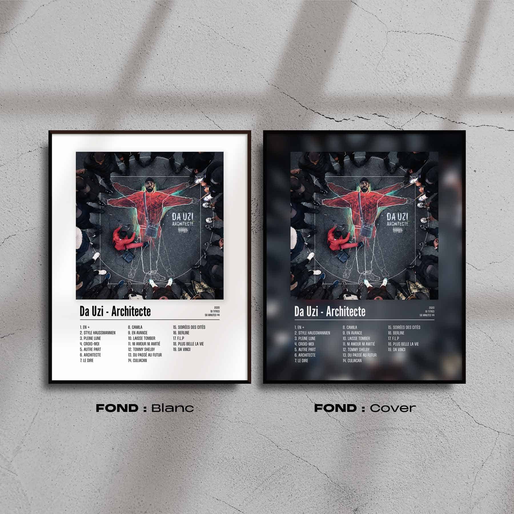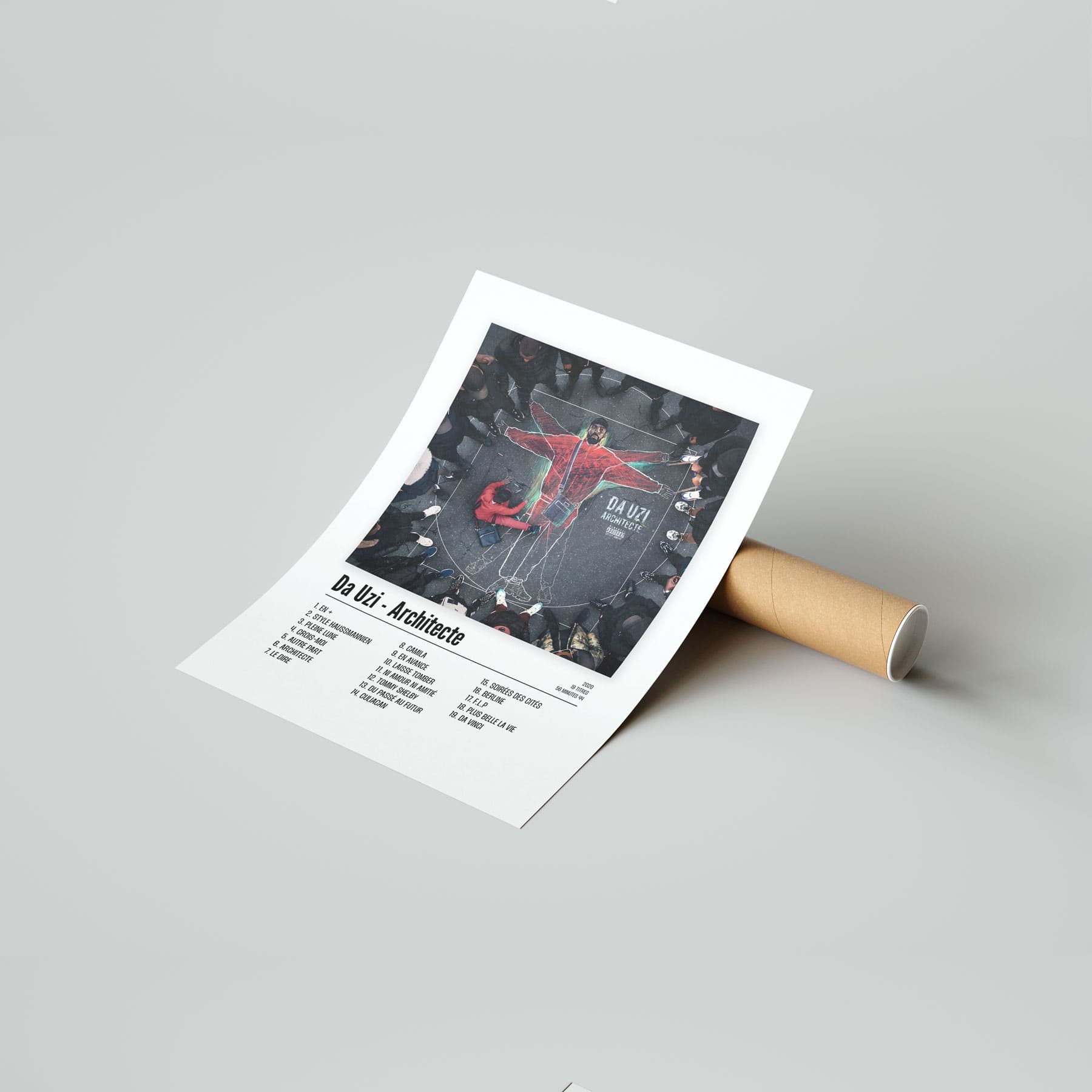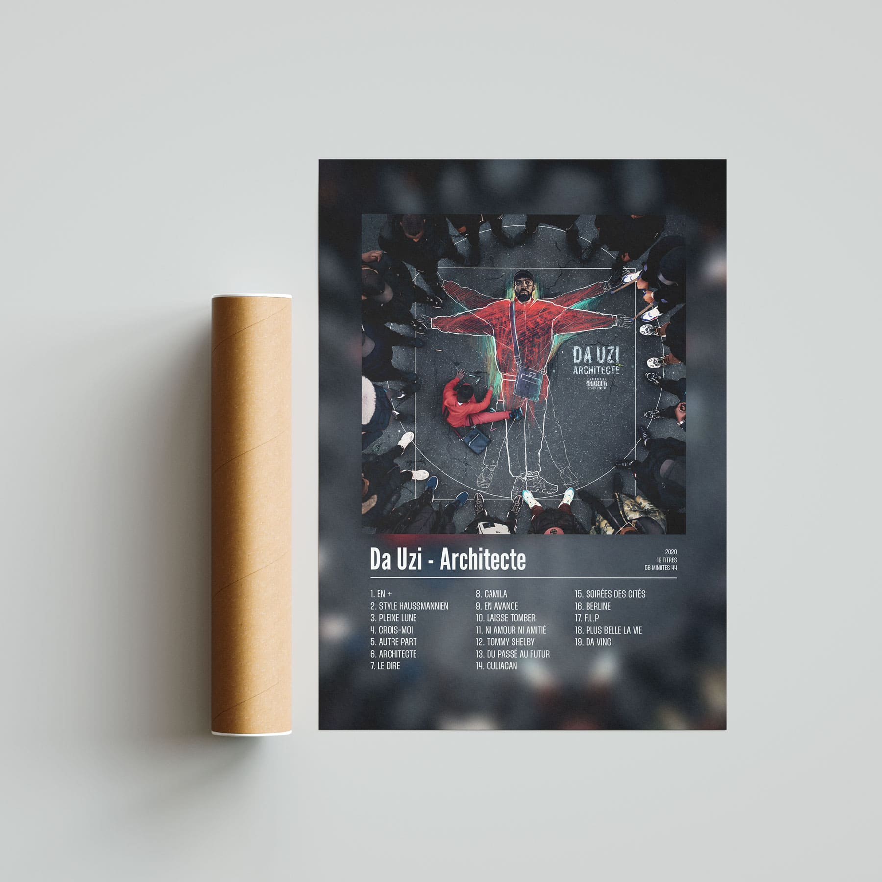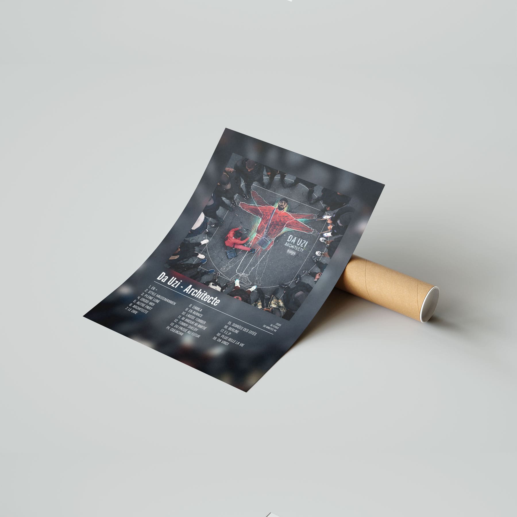 L'album "Architecte" de DA Uzi en poster pour décorer votre chambre, votre salon ou n'importe qu'elle autre pièce ! Poster de rap français avec une impression de haute qualité, il fera toujours son effet. Idéal pour soi ou pour offrir.