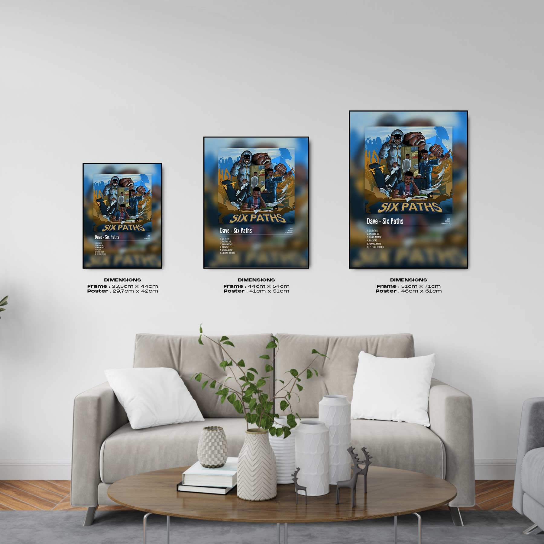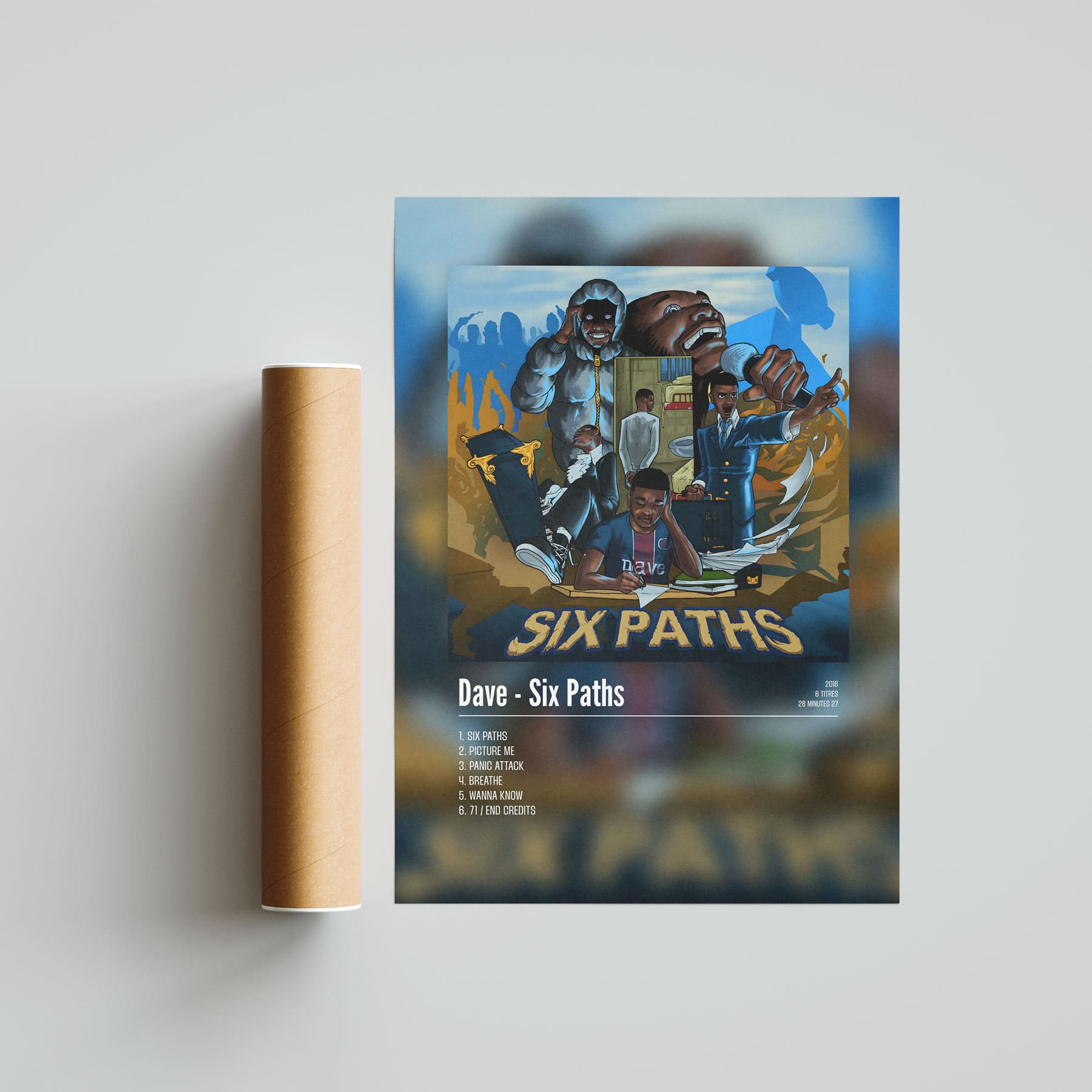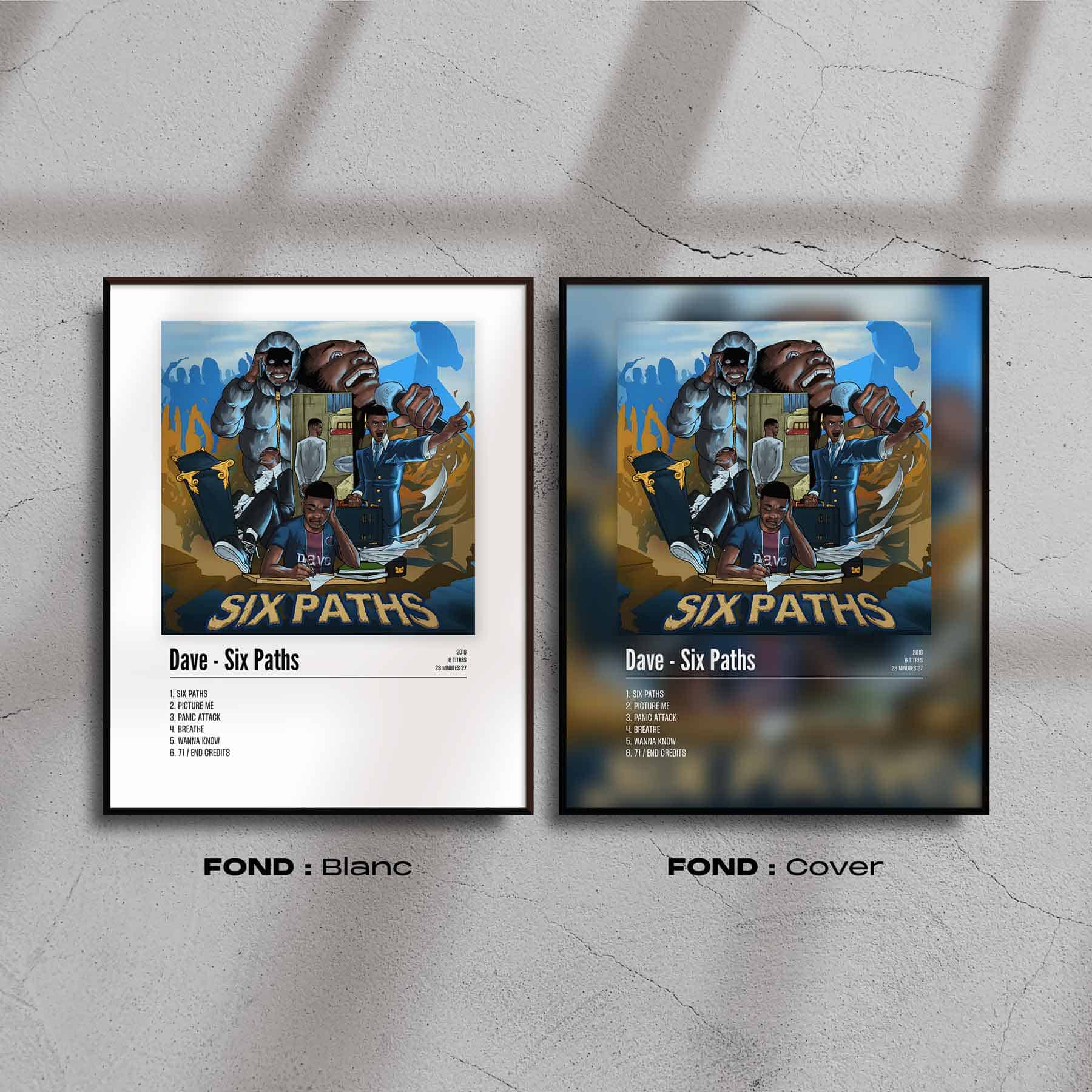 L'album "Six Paths" de Dave en poster pour décorer votre chambre, votre salon ou n'importe qu'elle autre pièce ! Poster de rap anglais / rap UK avec une impression de haute qualité, il fera toujours son effet. Idéal pour soi ou pour offrir.