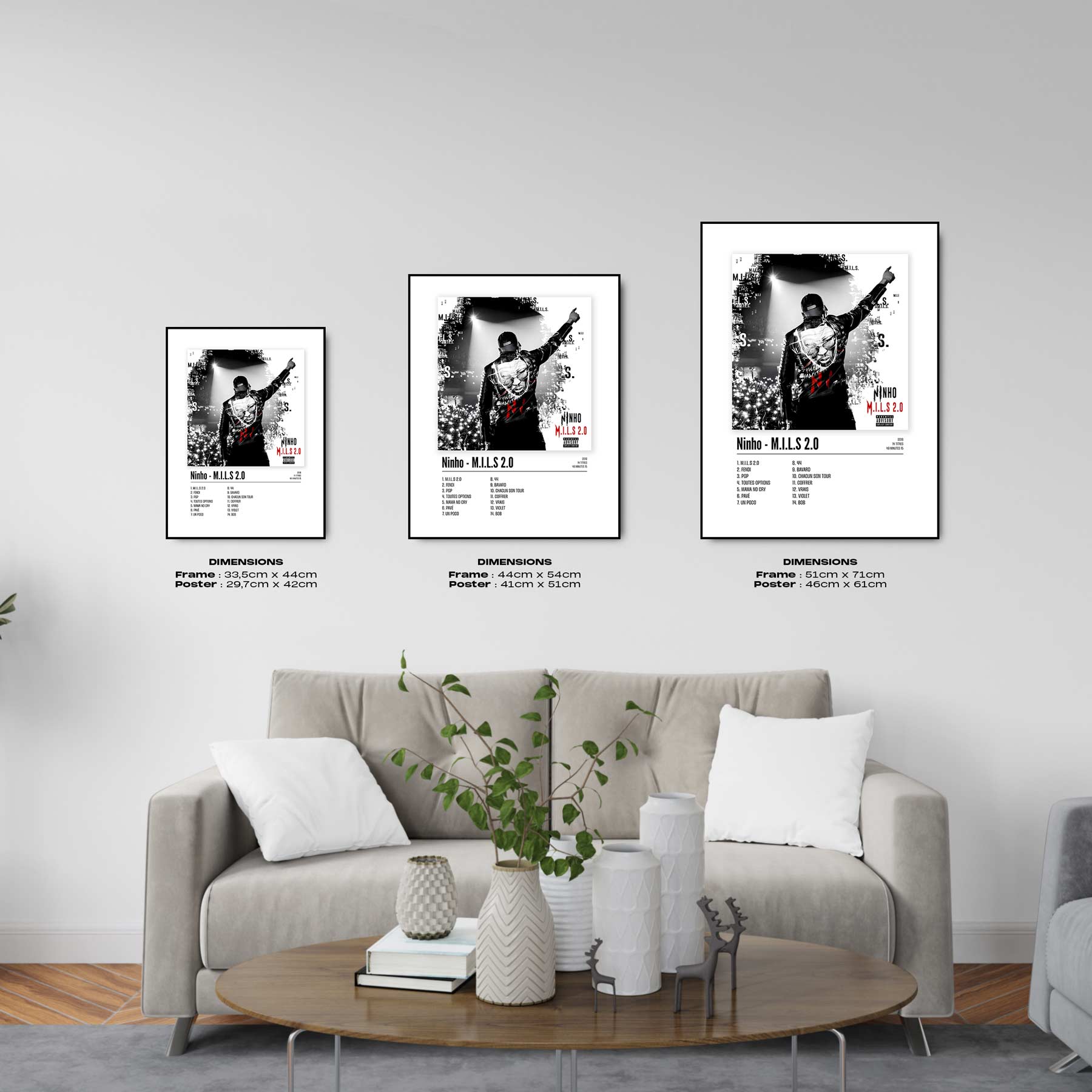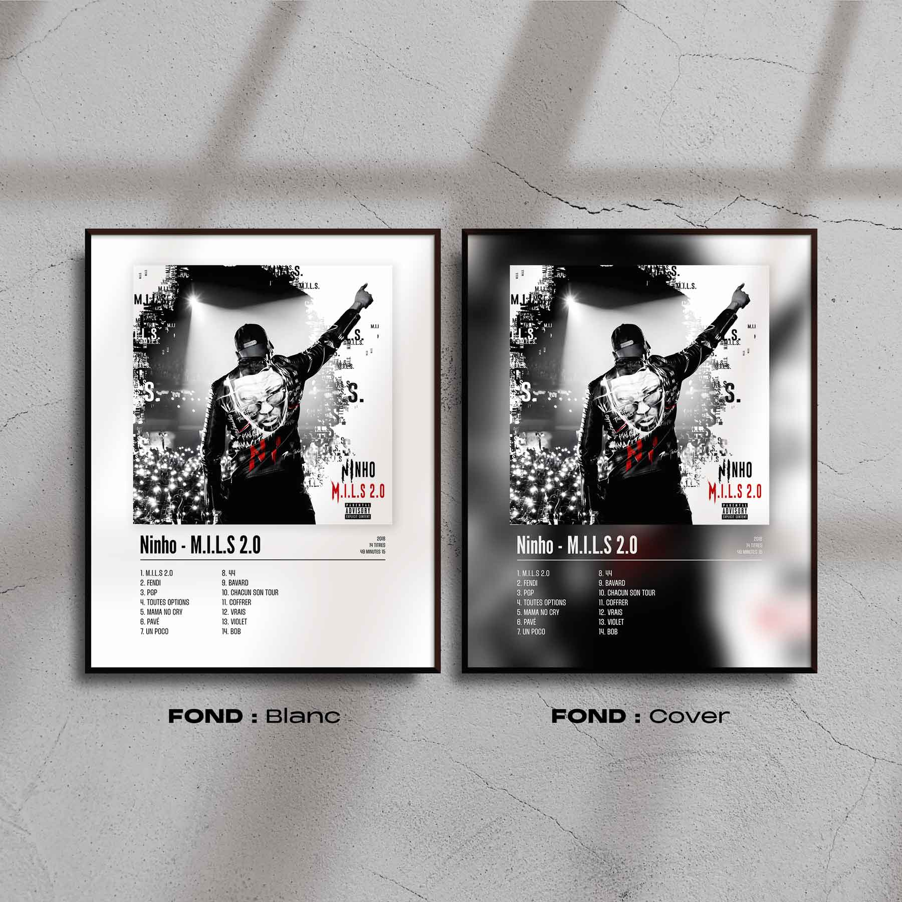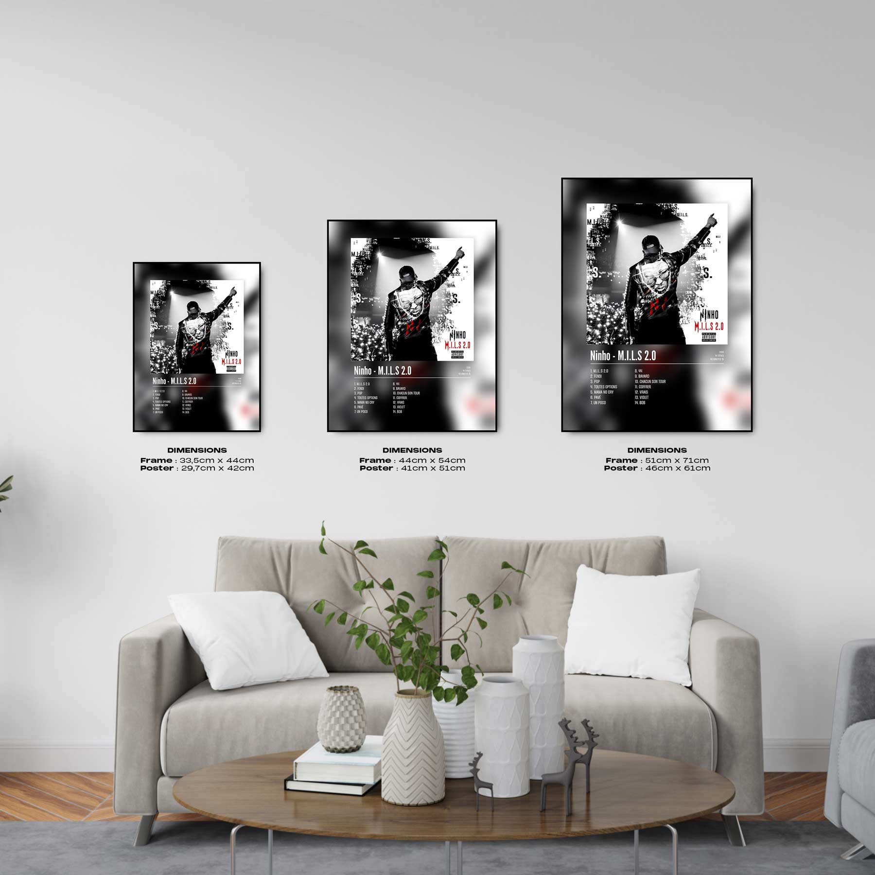 L'album "M.I.L.S 2.0" de Ninho en poster / cadre pour décorer votre chambre, votre salon ou n'importe qu'elle autre pièce ! Poster / cadre de rap français avec une impression de haute qualité, il fera toujours son effet. Idéal pour soi ou pour offrir.