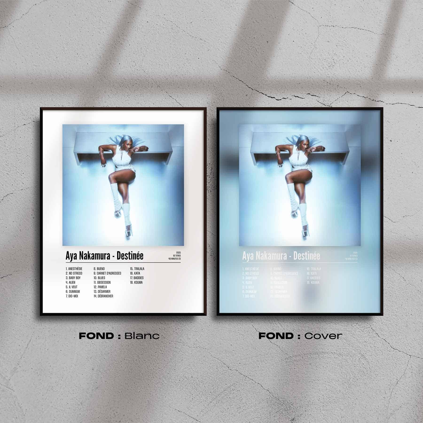 L'album "Destinée" de Aya Nakamura est disponible en poster pour décorer votre chambre, votre salon ou n'importe qu'elle autre pièce ! Poster de rap français avec une impression de haute qualité, il fera toujours son effet. Idéal pour soi ou pour offrir.