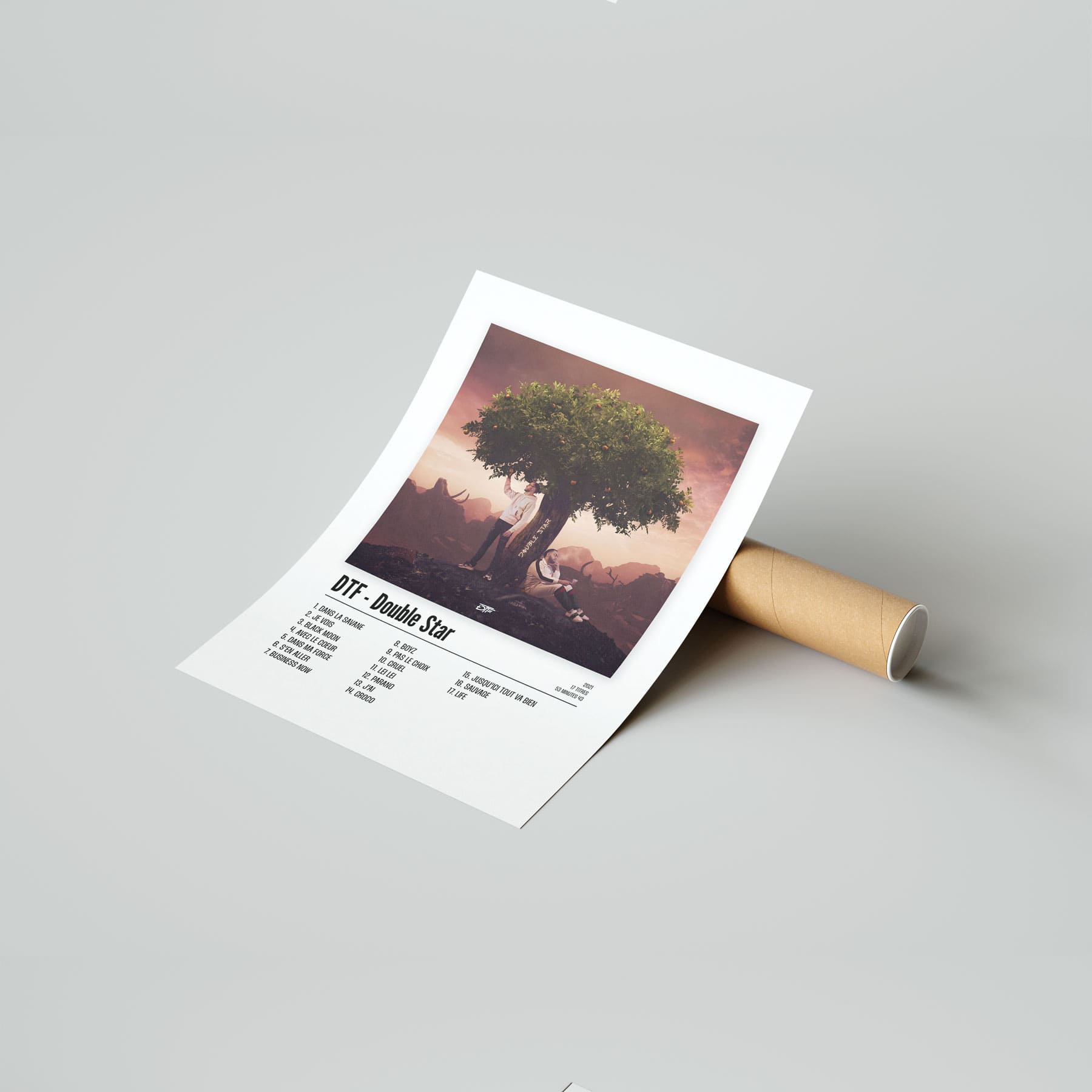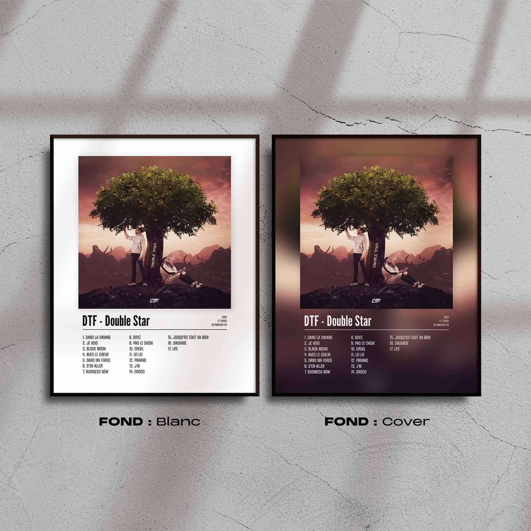 L'album "Double Star" de DTF en poster pour décorer votre chambre, votre salon ou n'importe qu'elle autre pièce ! Poster de rap français avec une impression de haute qualité, il fera toujours son effet. Idéal pour soi ou pour offrir.
