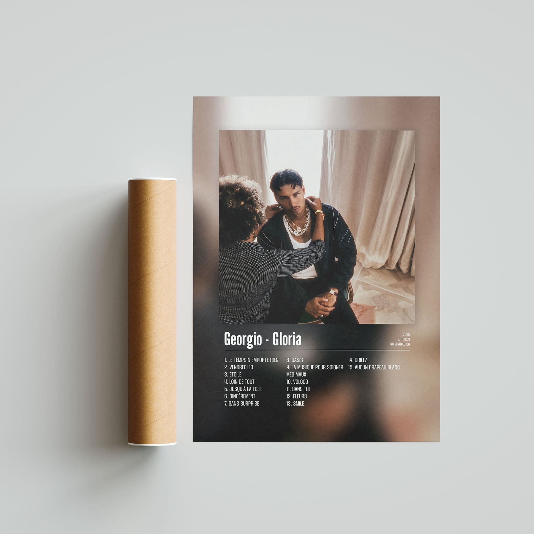 L'album "Gloria" de Georgio en poster pour décorer votre chambre, votre salon ou n'importe qu'elle autre pièce ! Poster de rap français avec une impression de haute qualité, il fera toujours son effet. Idéal pour soi ou pour offrir.