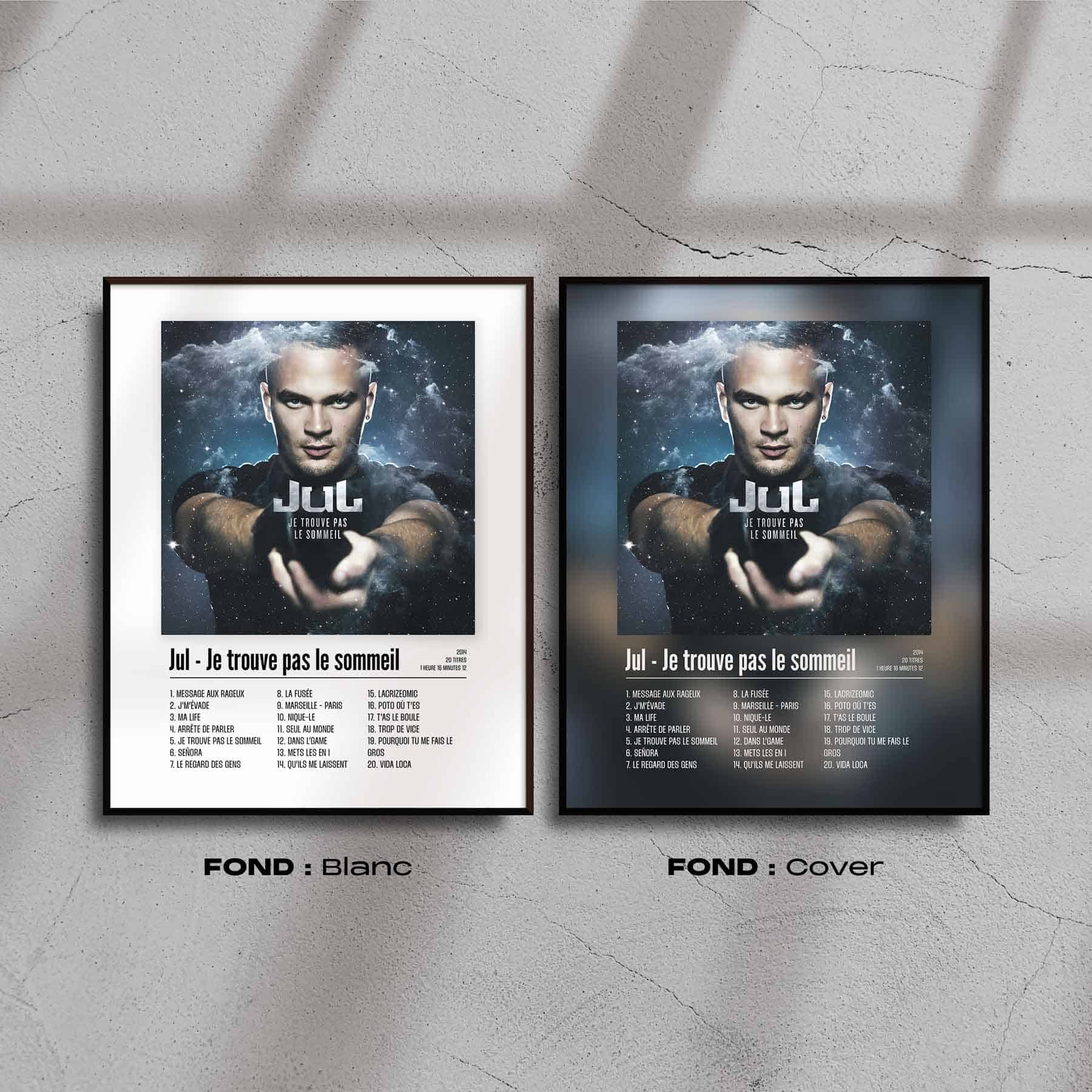 L'album "Je trouve pas le sommeil" de Jul en poster / cadre / affiche pour décorer votre chambre, votre salon ou n'importe qu'elle autre pièce ! Poster / cadre / affiche de rap français avec une impression de haute qualité, il fera toujours son effet. Idéal pour soi ou pour offrir. Apporte la fougue marseillaise directement sur ton mur.