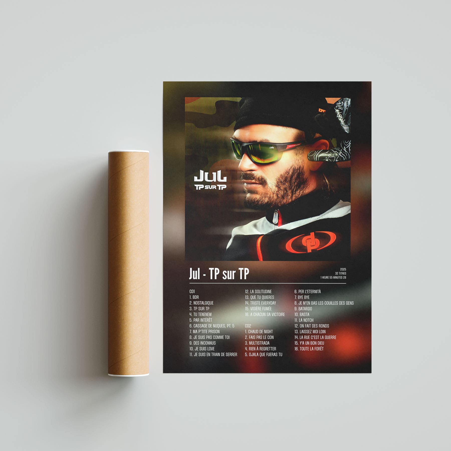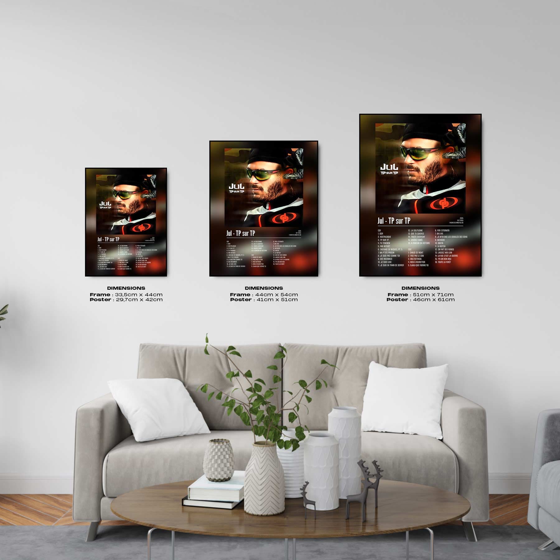L'album "TP sur TP" de Jul en poster / cadre / affiche pour décorer votre chambre, votre salon ou n'importe qu'elle autre pièce ! Poster / cadre / affiche de rap français avec une impression de haute qualité, il fera toujours son effet. Idéal pour soi ou pour offrir. Apporte la fougue marseillaise directement sur ton mur.