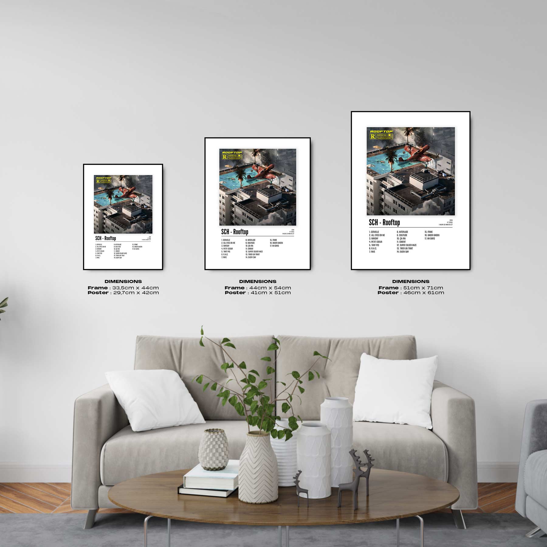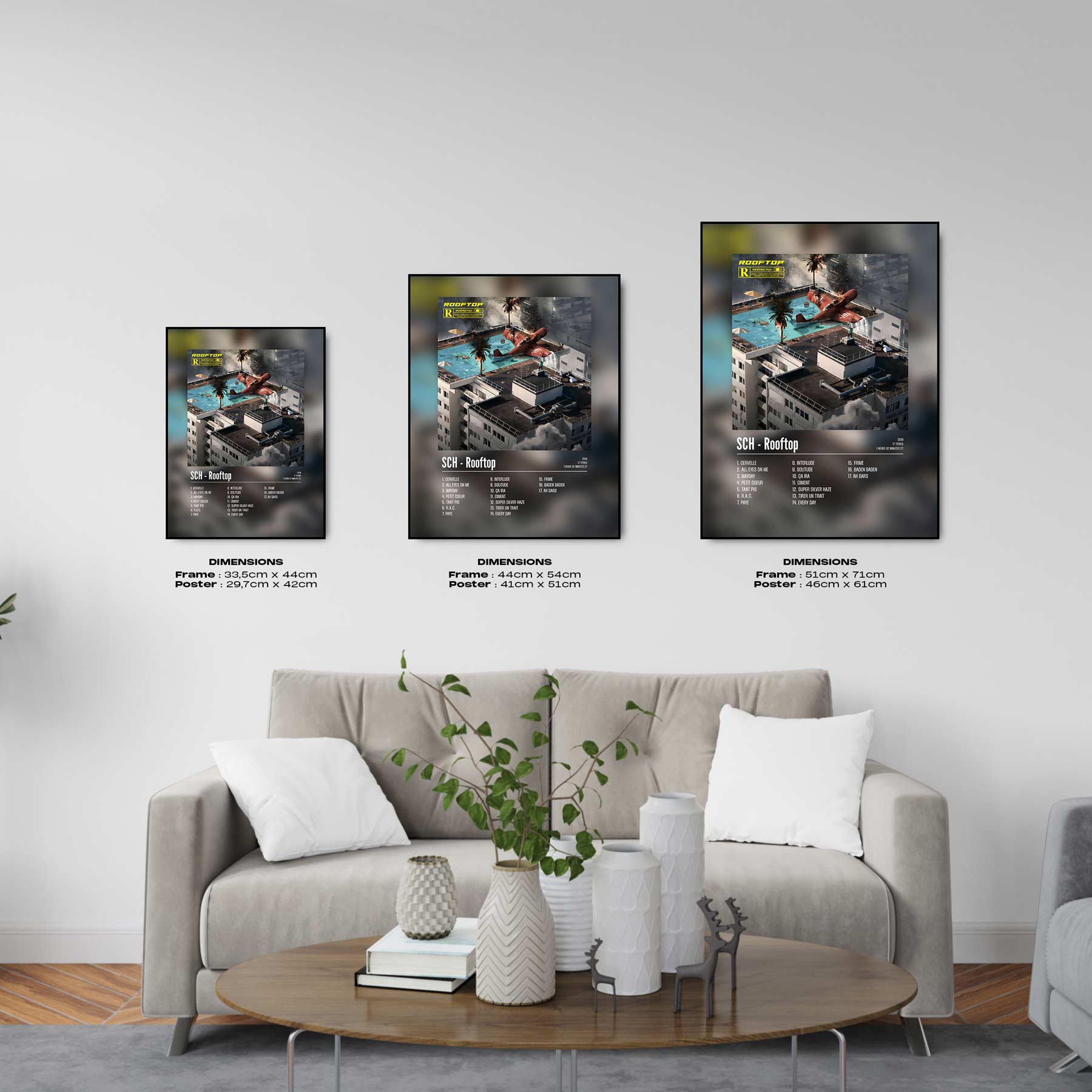 L'album "Rooftop" de SCH en poster pour décorer votre chambre, votre salon ou n'importe qu'elle autre pièce ! Poster de rap français avec une impression de haute qualité, il fera toujours son effet. Idéal pour soi ou pour offrir.
