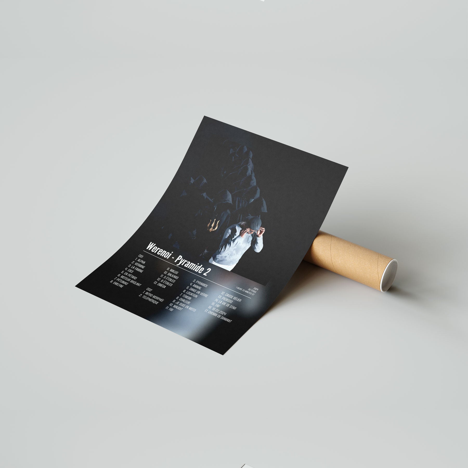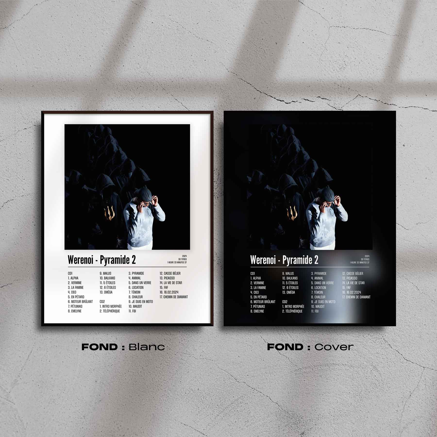 L'album "Pyramide 2" de Werenoi en poster pour décorer votre chambre, votre salon ou n'importe qu'elle autre pièce ! Poster de rap français avec une impression de haute qualité, il fera toujours son effet. Idéal pour soi ou pour offrir.